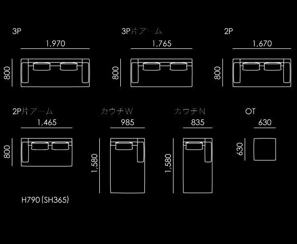 カウチN : W835 / D1580 / H790(SH365)